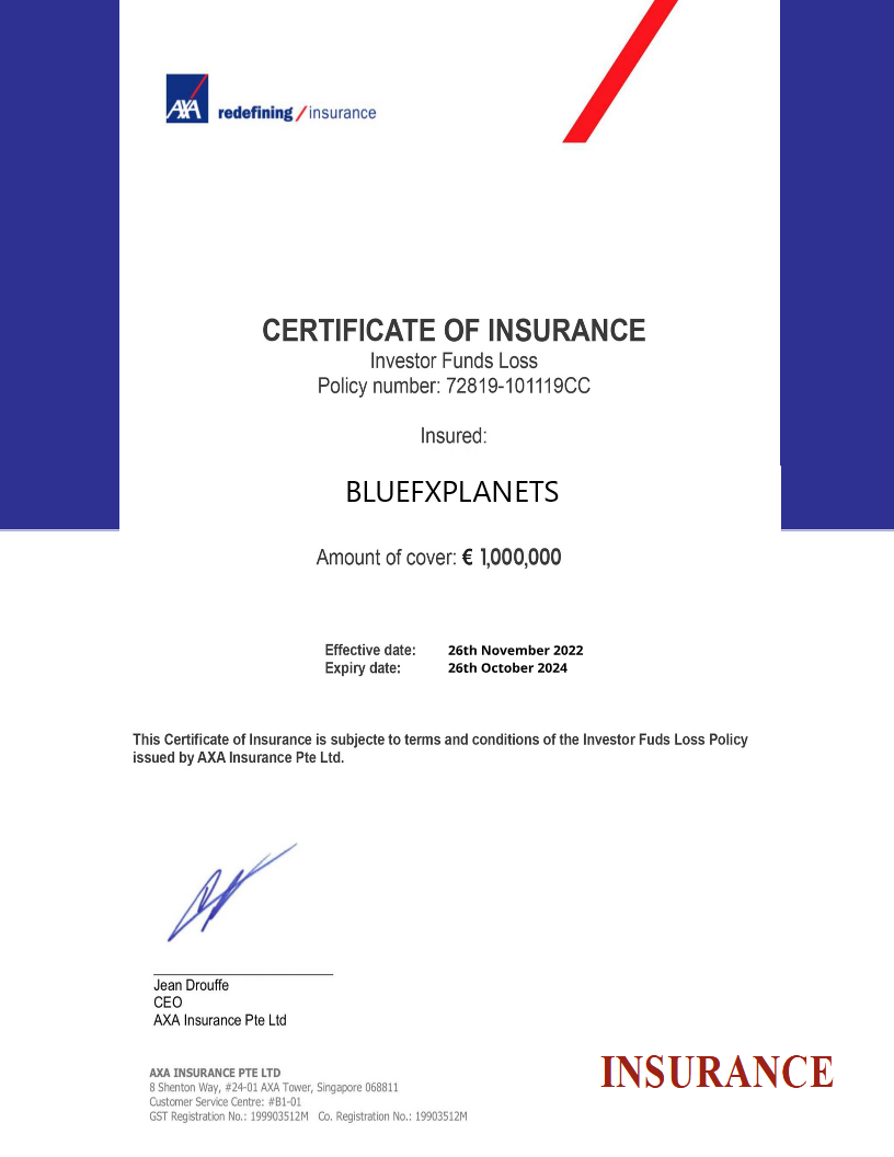 support@bluefxplanets.comBluefxplanets is registered as an LLC with several certification due ethics standard of the corporate laws of USA and the INTERNATIONAL BUSINESS CORPORATION (IBPC). all deposits are secured insured .
